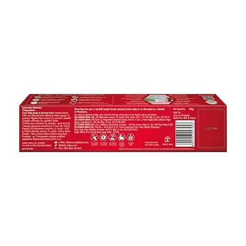 ZZ-Dabur Red Toothpaste 100 gm is a herbal toothpaste designed to promote oral hygiene. Infused with natural ingredients, it helps in fighting germs, preventing cavities, and maintaining fresh breath. The unique red formula provides effective cleaning while being gentle on gums. Ideal for daily use, it ensures strong teeth and healthy gums. Free from harmful chemicals, it is a safe choice for the entire family. The 100 gm pack offers long-lasting usage, making it a convenient addition to your oral care routine.