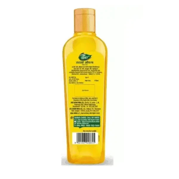 Dabur Sarson Tel is a 65 ml herbal hair oil enriched with the goodness of mustard and amla. It promotes hair growth, reduces hair fall, and prevents premature greying. The oil deeply nourishes the scalp, strengthens hair roots, and adds natural shine. Regular use helps in maintaining healthy, thick, and lustrous hair. Suitable for all hair types, this Ayurvedic formulation is free from harmful chemicals and is trusted for generations.