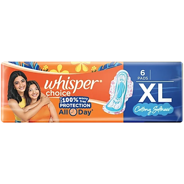 Superior Absorption: Whisper Choice Sanitary Napkins are crafted with advanced absorbent technology that locks away moisture, keeping you dry and comfortable for hours.