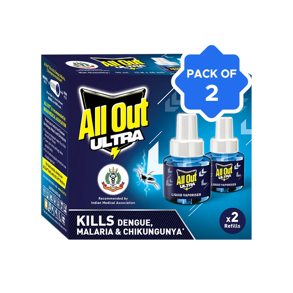 Start your fight against disease spreading mosquitoes with ALL OUT ULTRA. Its powerful scientific formula kills Dengue, Malaria and Chikungunya spreading mosquitoes. All Out Liquid Vaporizer helps you ensure a mosquito-free home. With its dual-mode functionality, All Out Ultra offers 2X more killer action against mosquitoes. So, get home the expert ALL OUT protection today and protect your family!