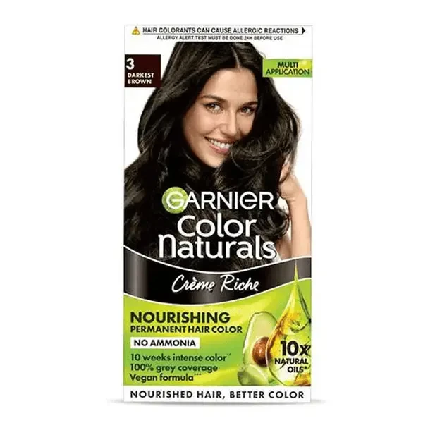 Choose Garnier Color Naturals Hair Color No.3 Darkest Brown for a vibrant, long-lasting color that nourishes and protects your hair, giving you the confidence to shine every day.