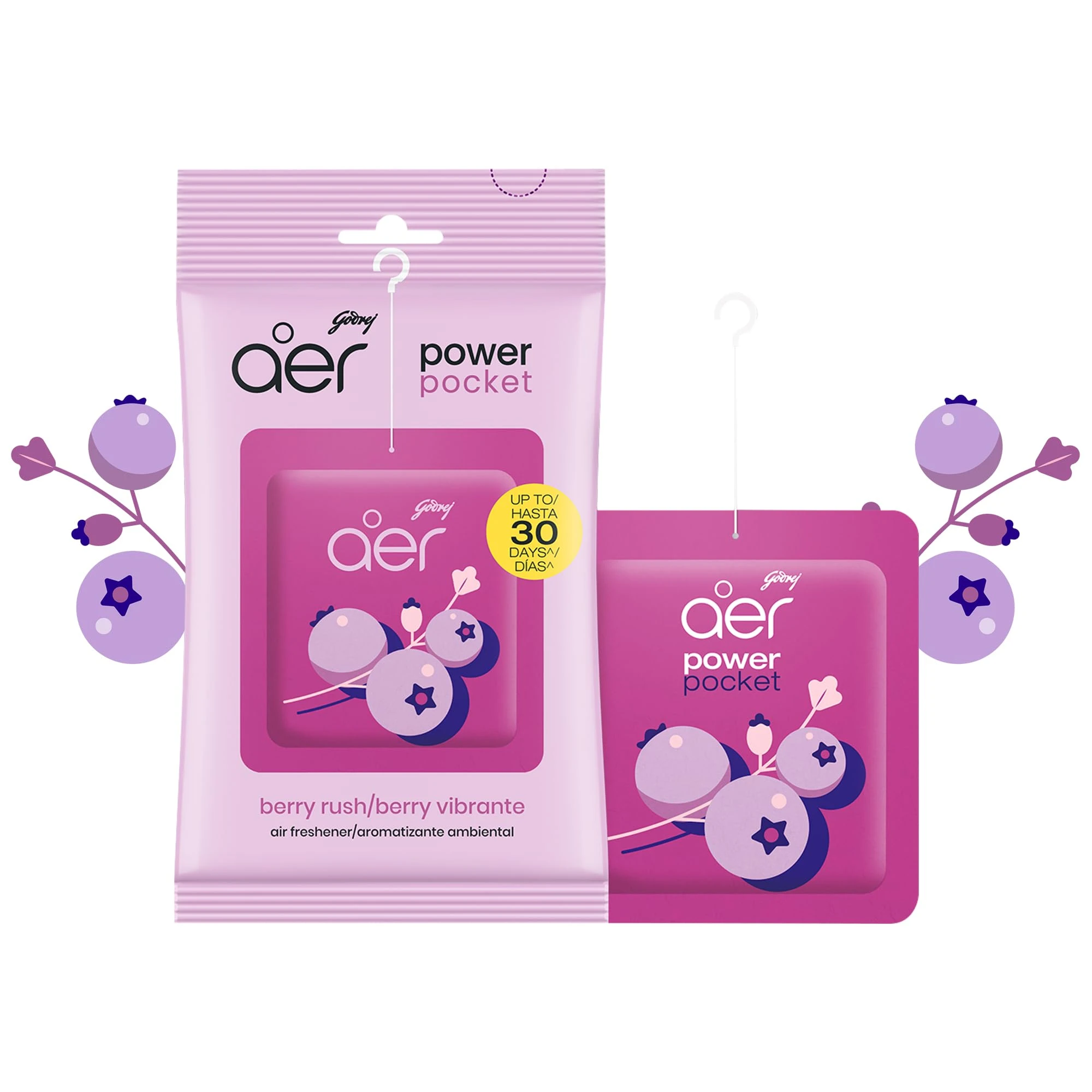 Simply hang or place the Aer Pocket in your desired location and let the captivating berry scent do the rest. No need for sprays or plugs.