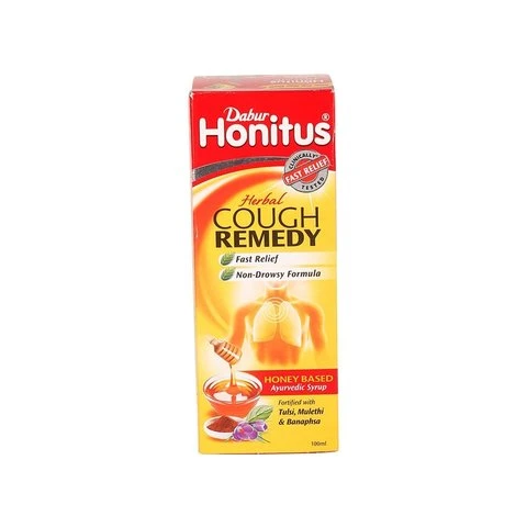 Dabur Honitus is India's No.1 Ayurvedic Cough Syrup. It is Clinically Tested for Fast & Effective Relief from Cough & Sore Throat in just 15 minutes. Its 100% Ayurvedic non-drowsy formula is made up of ingredients like Honey, Tulsi, Mulethi, Shunthi & Banapsha. It is safe to consume, does not contain any alcohol and is non-addictive.