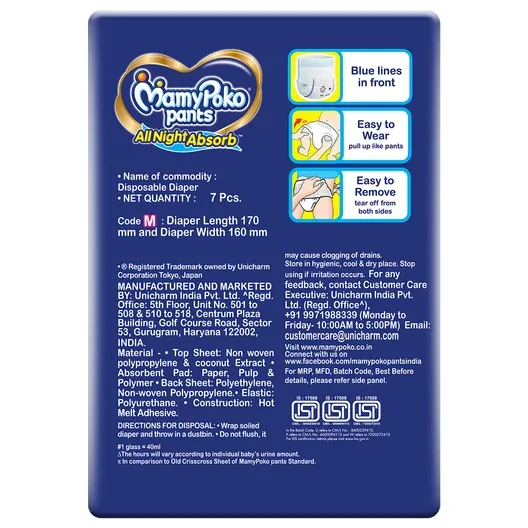 Introducing the Mamypoko All Night Absorb Diaper Pants M-7, designed to provide your baby with the ultimate comfort and protection throughout the night. These diaper pants are perfect for active babies who need a reliable solution to stay dry and comfortable, ensuring a peaceful night's sleep for both the baby and parents.