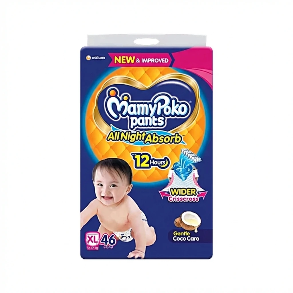 Choose Mamypoko All Night Absorb XL-46 Diapers for a reliable and comfortable solution to keep your baby dry and happy throughout the night.