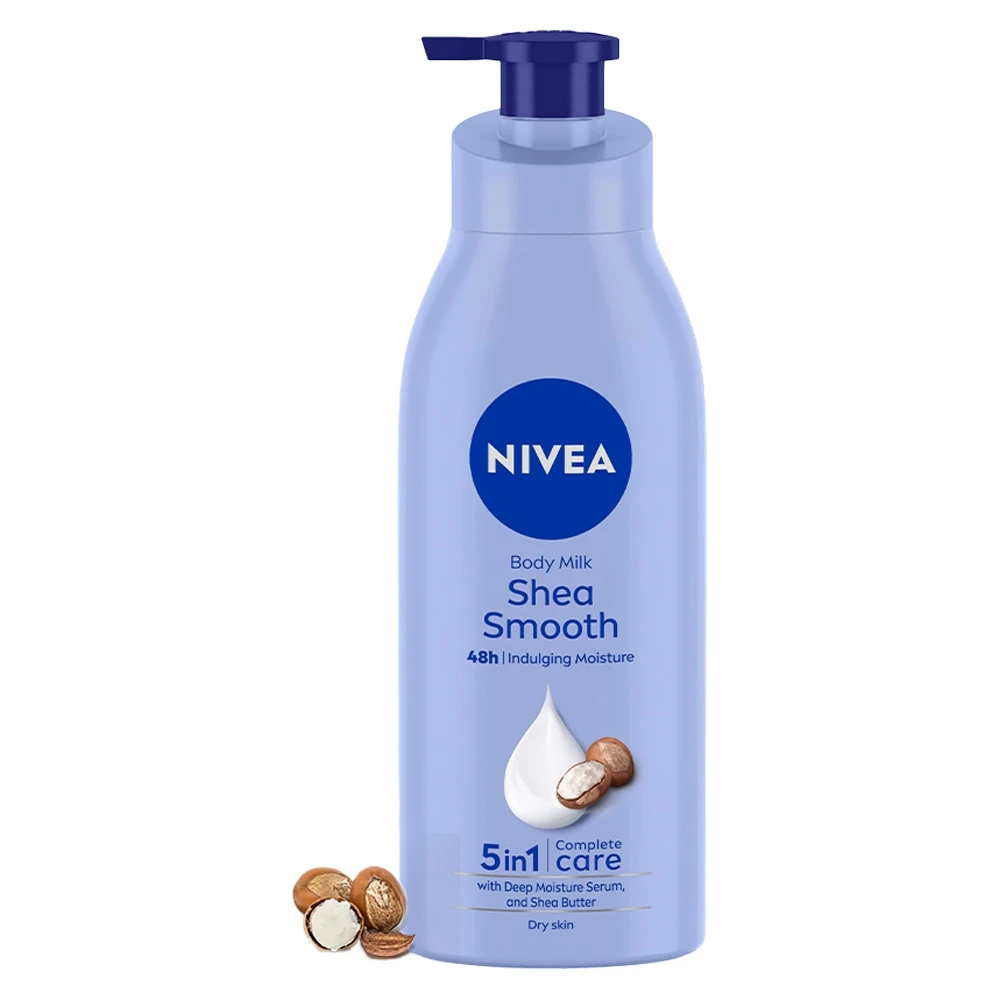 Transform your skincare routine with the Nivea Body Milk Shea Smooth Body Lotion and enjoy the benefits of deeply moisturized, silky-smooth skin every day.