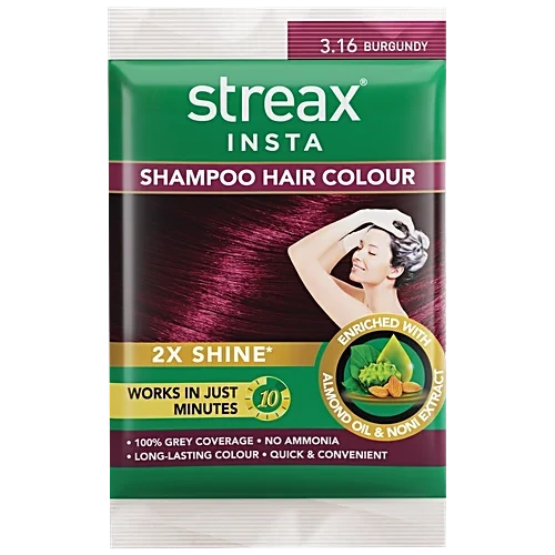 Transform your hair with the Streax Insta Shampoo Hair Colour No.3.16 Burgundy, a revolutionary product designed for those who desire vibrant, salon-quality color without the hassle. This innovative shampoo hair color is perfect for individuals seeking a quick and easy way to achieve a rich burgundy hue that lasts. Ideal for busy professionals, style enthusiasts, and anyone looking to refresh their look effortlessly.