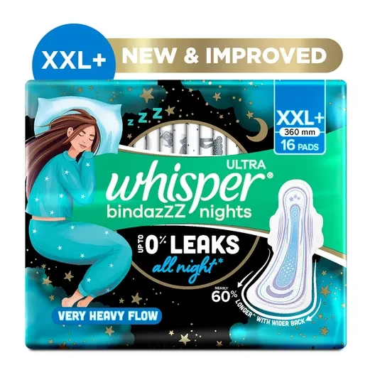 Choose Whisper Bindazzz Nights Sanitary Pads XXL+ for a worry-free night and wake up feeling refreshed and ready to take on the day.